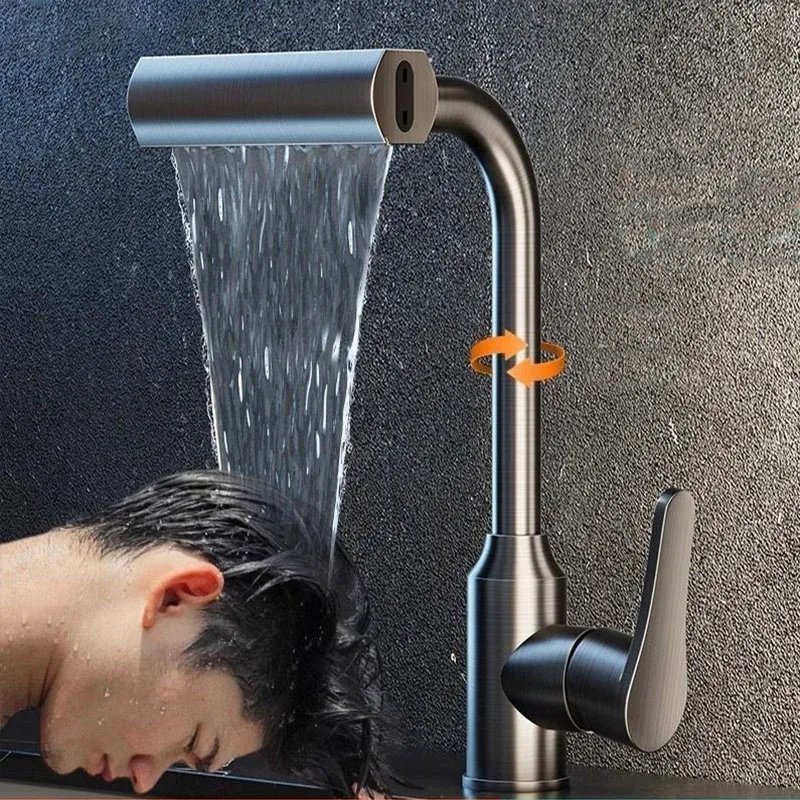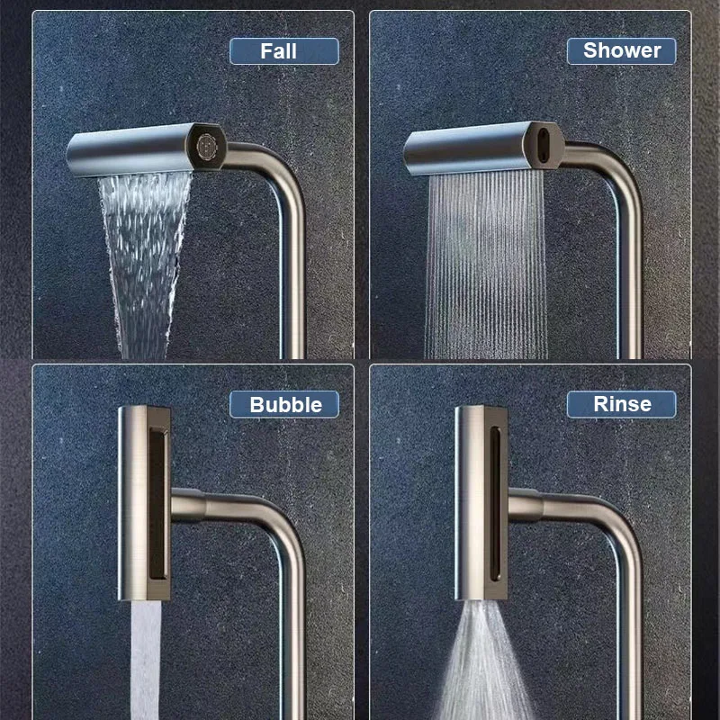 4 Mode Gray Bathroom Basin Faucets Rotation Waterfall Black Stream Sprayer Head Sink Mixer Brushed Nickle Water Tap