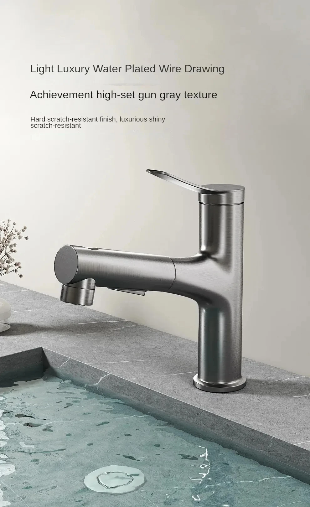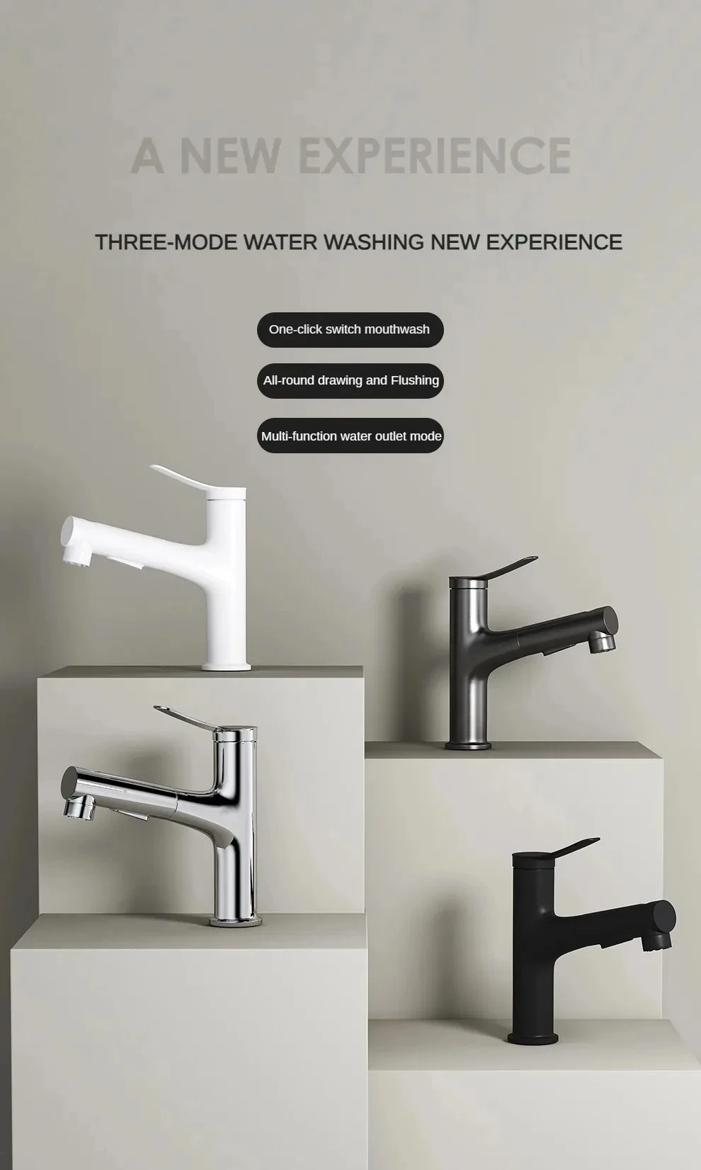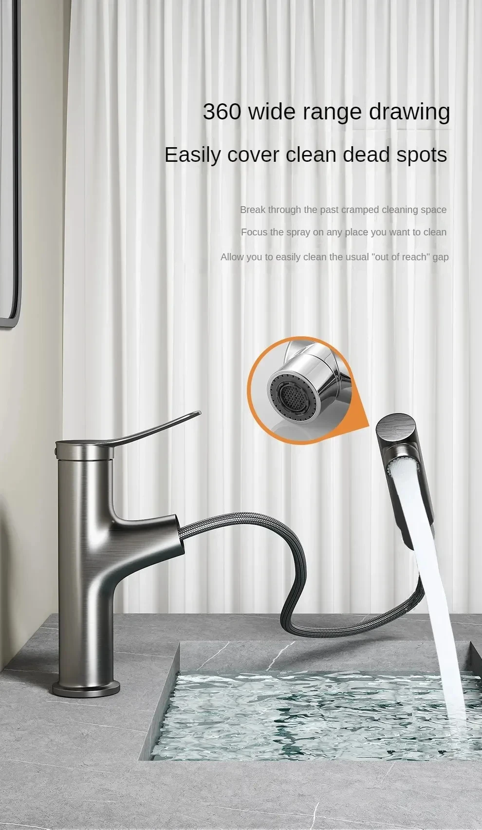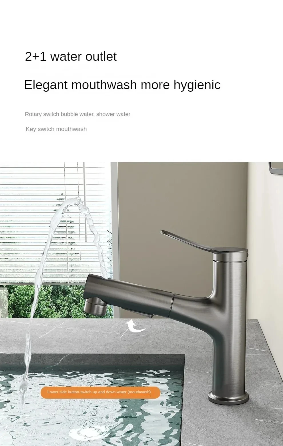 Bathroom Sink Pull-out Hot and Cold Water Mixer Faucet for Bathroom Grey/Chrome 3 Functions Mouthwash Faucet Deck Mount