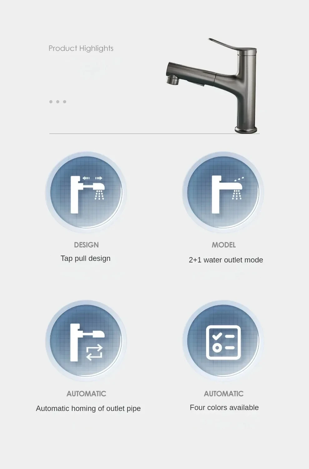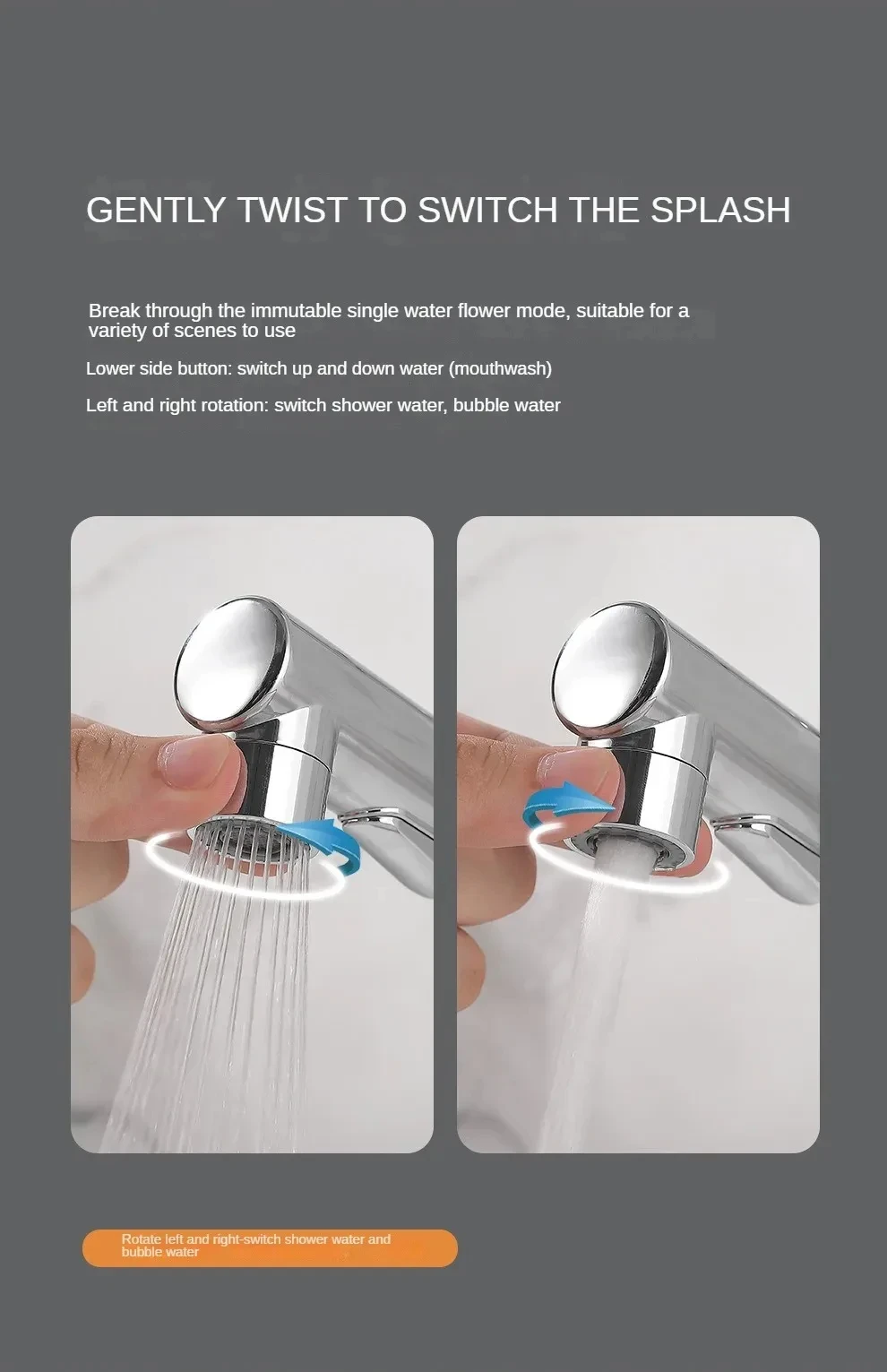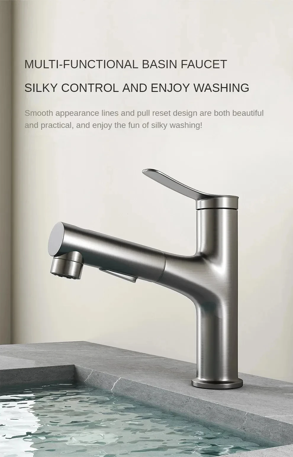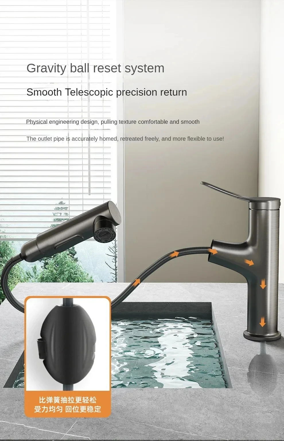 Bathroom Sink Pull-out Hot and Cold Water Mixer Faucet for Bathroom Grey/Chrome 3 Functions Mouthwash Faucet Deck Mount