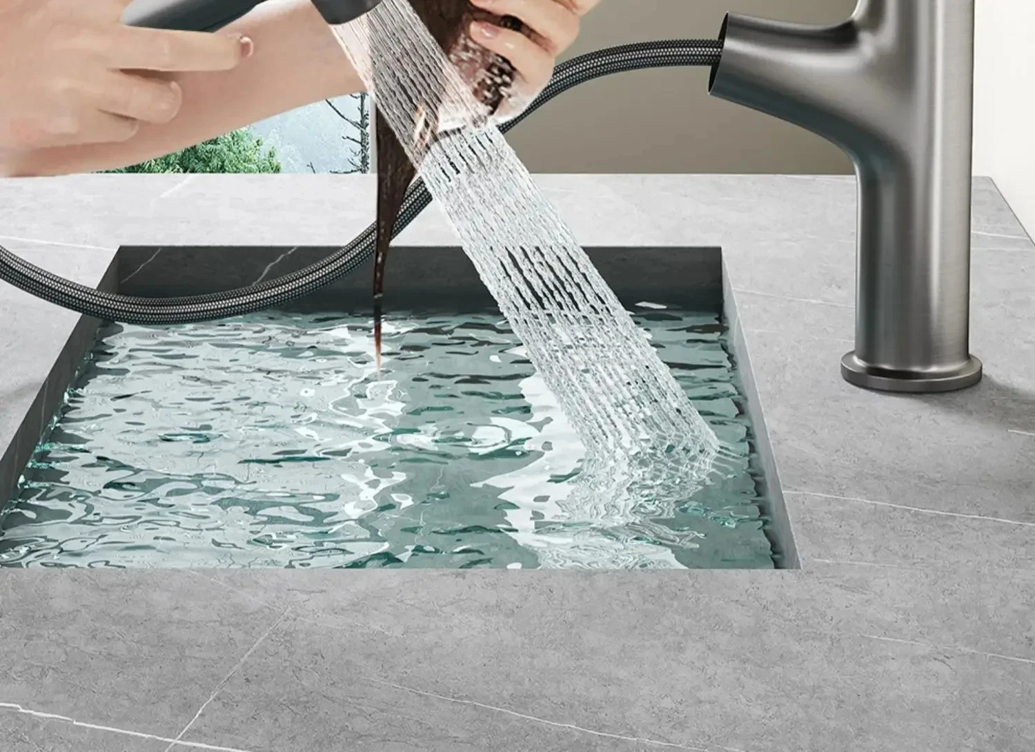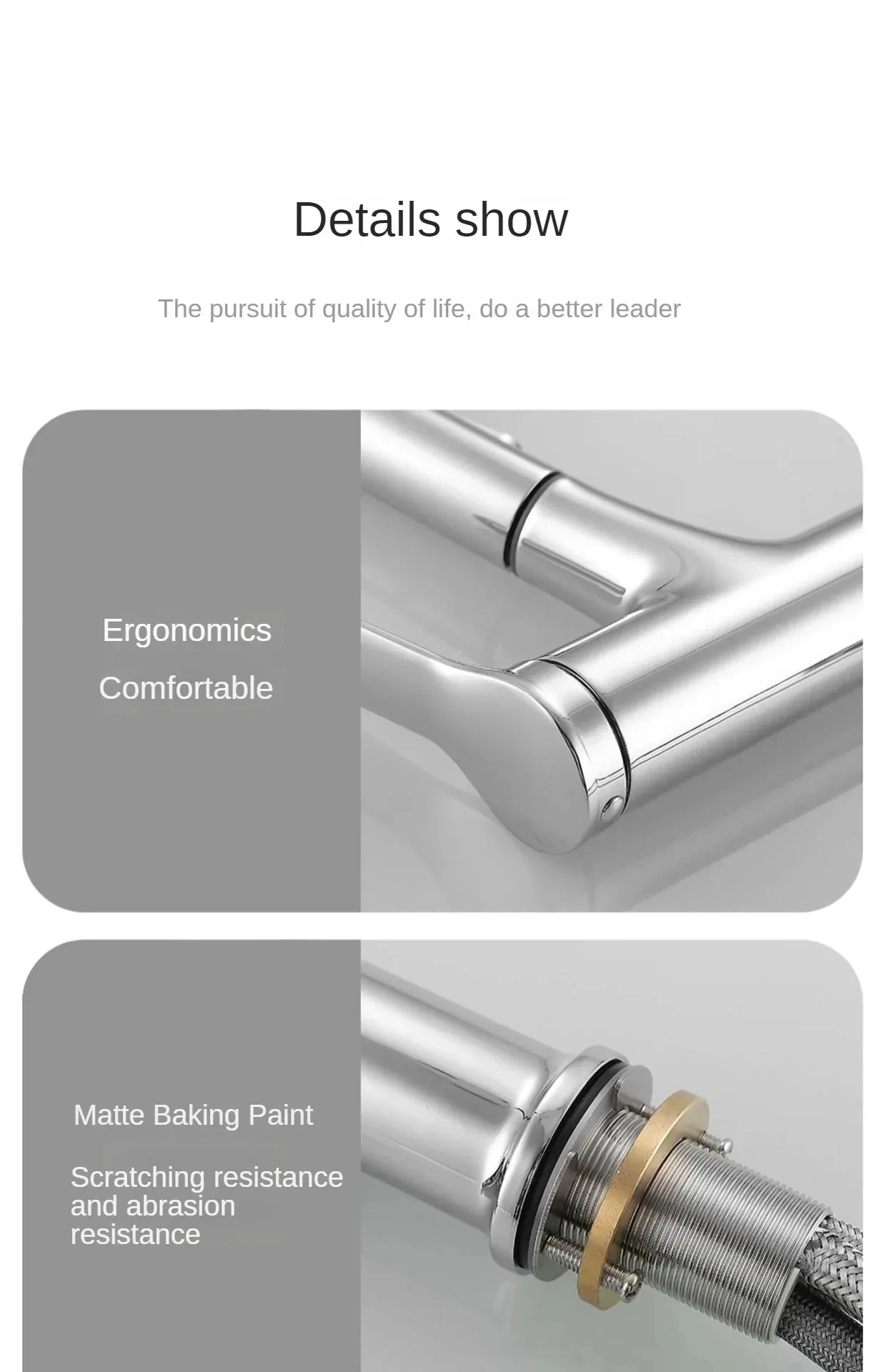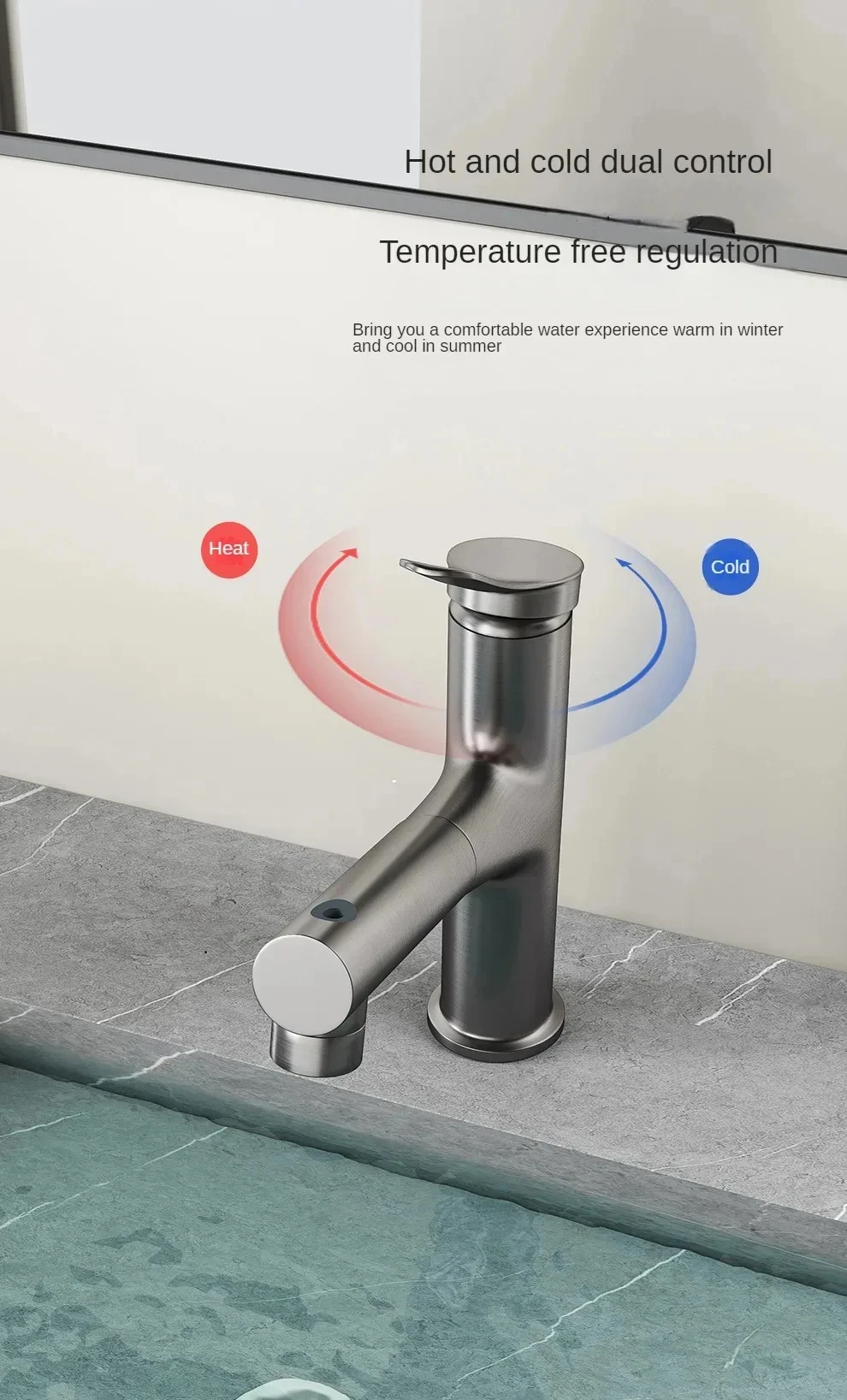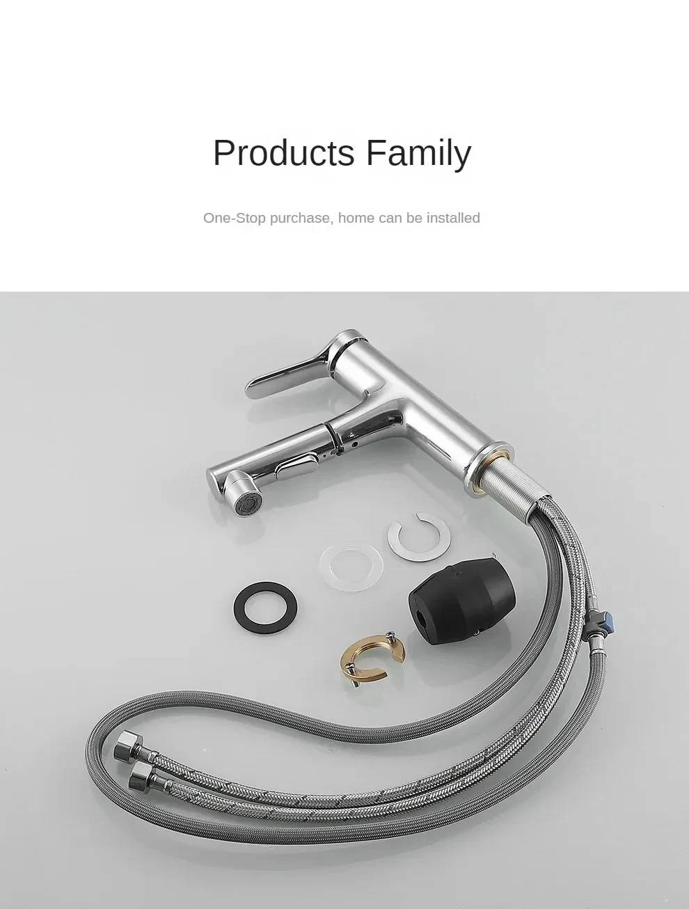 Bathroom Sink Pull-out Hot and Cold Water Mixer Faucet for Bathroom Grey/Chrome 3 Functions Mouthwash Faucet Deck Mount