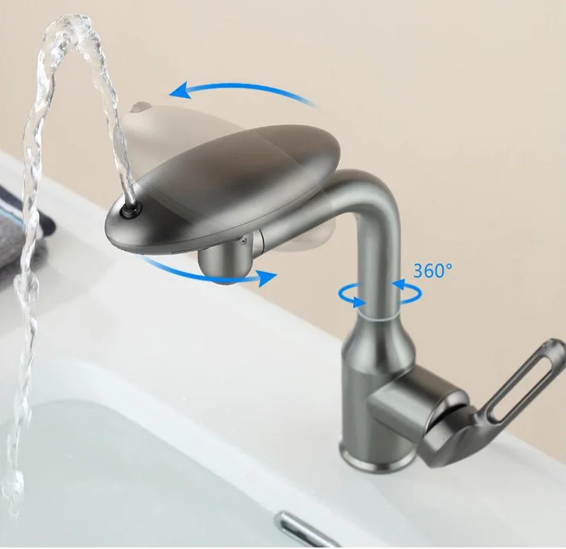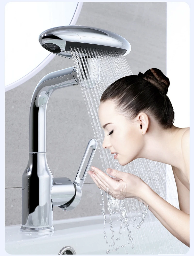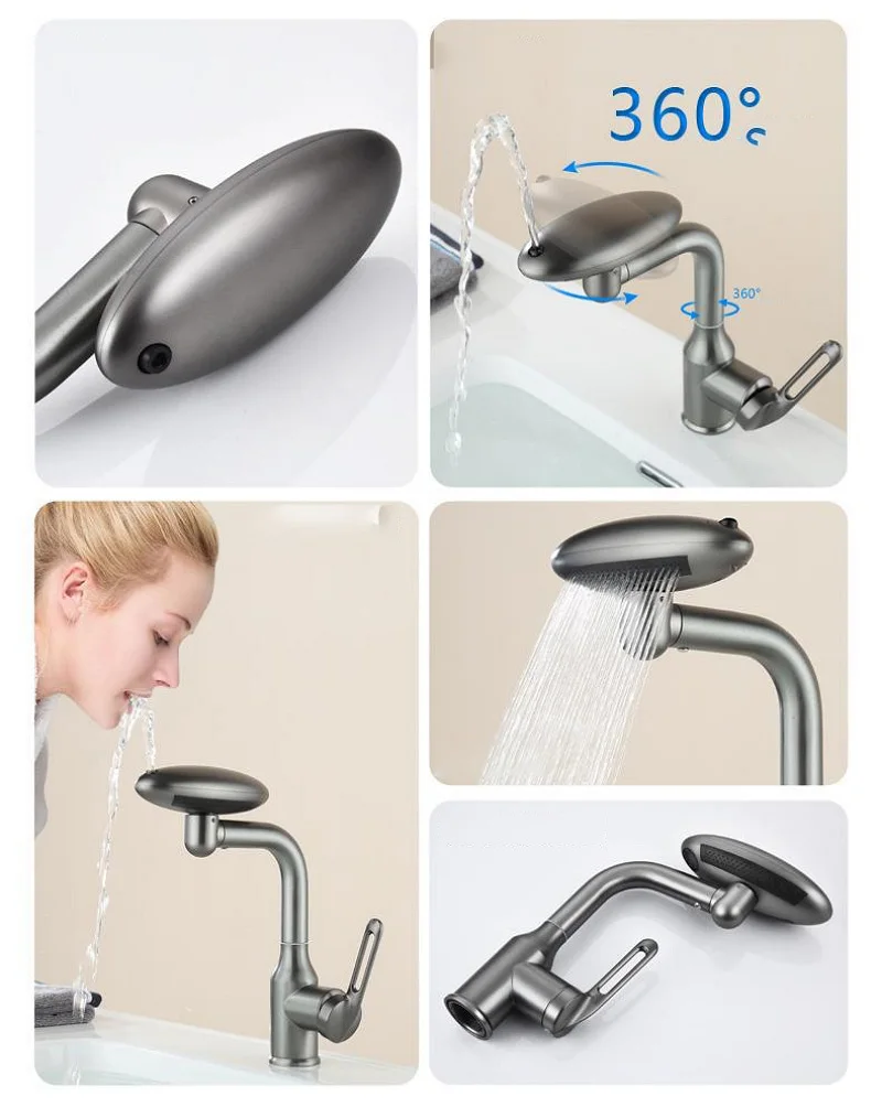 Multi-Function Waterfall Bathroom Basin Faucet 4 Modes Stream Sprayer 360 Degree Swivel Faucet Aerator Hot Cold Water Sink Mixer